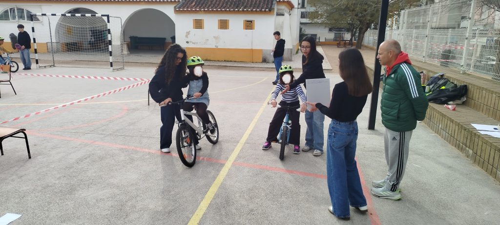 Ao longo da atividade, os alunos do 1.º ciclo tiveram a oportunidade de percorrer o circuito utilizando trotinetes e/ou bicicletas. Durante o percurso, foram acompanhados pelos alunos do 9.º ano, que os orientaram e partilharam alguns conceitos fundamentais de segurança rodoviária, bem como o significado de diversos sinais de trânsito presentes na via pública.