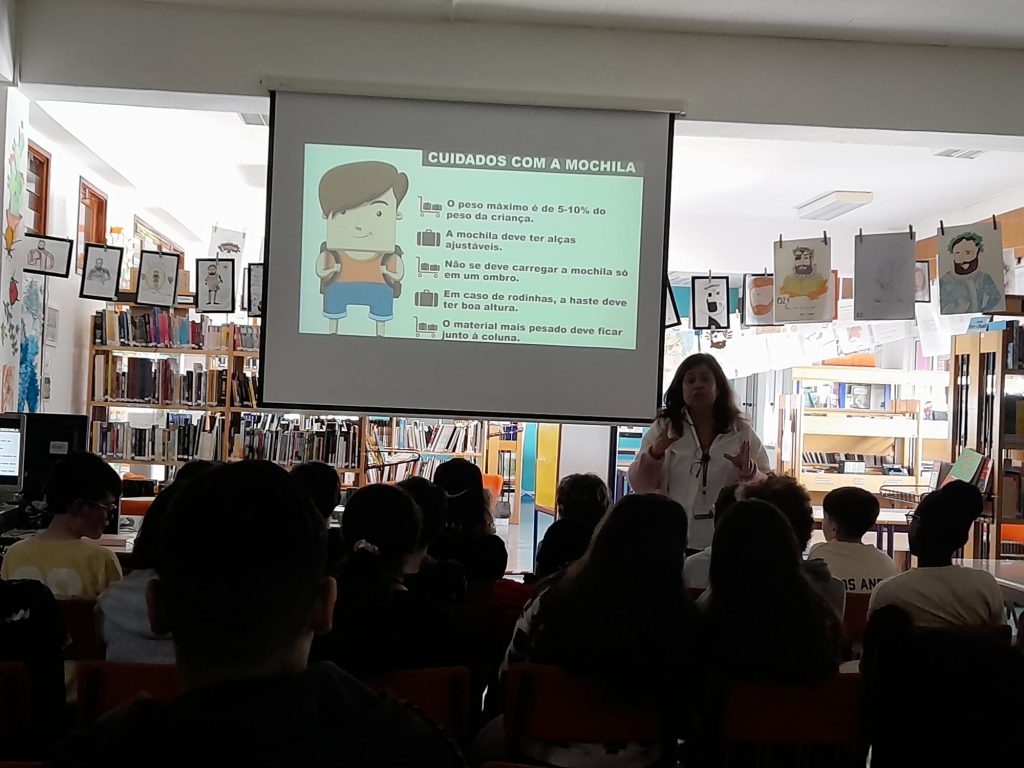 Esta ação, de caráter dinâmico e interativo, contou com a participação ativa e interessada dos alunos, que demonstraram grande envolvimento ao longo de toda a sessão. Através de exemplos práticos e momentos de experimentação, os participantes tiveram a oportunidade de refletir sobre os seus hábitos diários e a forma como estes influenciam a sua saúde postural.